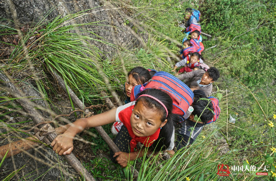 讀書時每個孩子必須經(jīng)歷的途徑,而位于四川涼山這個地界彝族自治州昭覺縣支爾莫鄉(xiāng)阿土勒爾村,有很多兒童卻因為環(huán)境影響不能正常讀書,而讀書之路要經(jīng)過攀爬近一百米的懸崖才能走出大山,這個村莊每天都有人因為爬上懸崖而摔傷,根據(jù)當(dāng)?shù)卮辶私獾竭@條懸崖已經(jīng)有七八個人被摔傷了,而更讓人擔(dān)心的是每個月上學(xué)讀書的孩子們、每次上學(xué)下山時都會給讓三個成人陪同十五個孩子一起爬懸崖讀書,通常下山需要一個小時,上山需要一個半小時,而外來人員則需要這個時間的一倍左右,這也讓村里年齡小一點的沒有去讀書的原因。