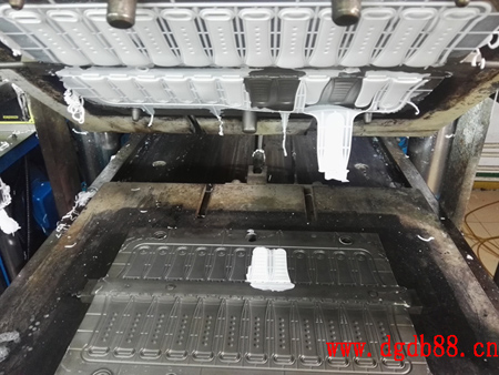 步驟2:加熱模具至180°后,上下兩片模具合并,膠狀的硅膠小條在高溫和壓力下,緊貼模具內壁表面成型,100秒后成型完畢