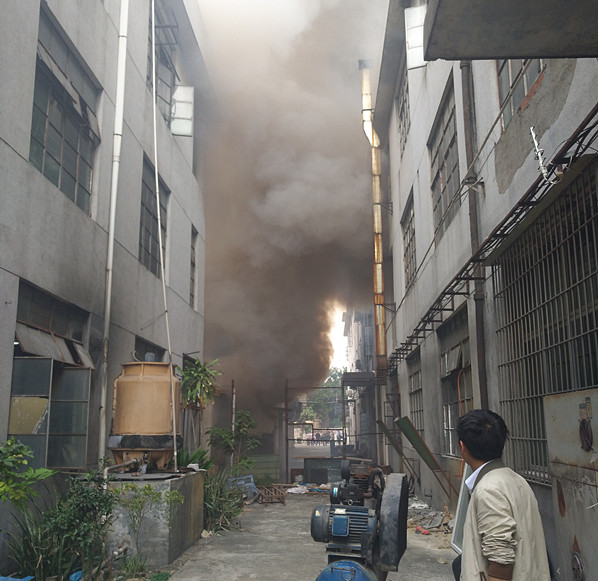 別小瞧現在是冬天的季節而不重視消防安全意識,出現火災不會因為天氣和氣候而忽略,今天下午三點半左右辦公室電腦突然斷電,正在納悶兒的我還不知道什么情況,突然被同事叫出去“快點出來,旁邊著火了”我在意識過來。就在今天2017年1月17號在東莞市大朗鎮高英村高英工業區一家硅膠制品廠房燃燒起火,而正是我們公司的旁邊的一家同行,經過了解堆放硅膠廢料和白電油的地方放置在一起導致出現火災,現場濃煙滾滾,一間單獨的房子被大火洶洶包圍,而這時我司領導冷靜的思考了以后決定帶領我司員工前去幫忙滅火,將火勢逐漸撲滅。