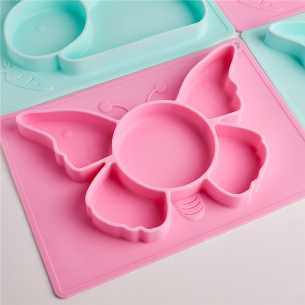 硅膠兒童餐盤主要選用環保食品級硅膠材料定制而成,在定制加工過程中選用食品級鉑金硫化劑高溫固化成型,安全環保,柔軟舒適,可長期用于高溫以及低溫冰凍,溫度區間在-40°-260°之間可正常使用,防摔耐磨,柔軟舒適,可以任意曲折,適用于兒童自主進食